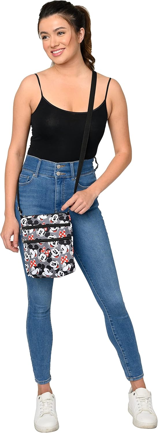 Disney Crossbody Bag Mickey & Minnie Mouse Travel Passport (Mickey Minnie Grey)